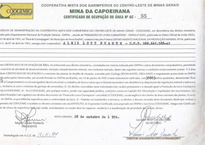 Somando para si um dinheiro para sua sobrevivência e normalmente suas esposas e filhos de garimpeiros são mais contumazes nesse trabalho que também é executado por aventureiros. No momento aguardamos a publicação da PLG no DOU a ser assinada pelo Dr. Vitor Hugo Froner Biccas, atual Diretor Geral da ANM, pois cumprimos todas as exigências da ANM e o parabenizando pelo seu grande legado junto a nossa comunidade garimpeira. Em 1999 me converti ao evangelho do Senhor Jesus, devido a dificuldades no garimpo, fui substituído no cargo de diretoria, mesmo de longe acompanhei o desenrolar das atividades. Nesse meu caminhar na obra do Senhor conheci Pastor Jeorge (cooperado) sobrinho de Jeorge “Turco” lapidário que conheci na década de 90 em Belo Horizonte que também é do ramo de pedras preciosas e vem somando com a gente experiência na área de mineração e também na parte burocrática da cooperativa. A Saga da Cooperativa me lembra muito uma passagem Bíblica em JUÍSES: 6: 1 De novo os israelitas fizeram o que o Senhor reprova, e durante sete anos ele os entregou nas mãos dos midianitas.