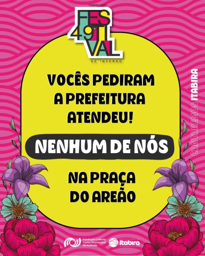 Devido ao sucesso nos eventos do 49º Festival de Inverno de Itabira, a Prefeitura Municipal de Itabira juntamente com a FCCDA decidiram alterar o local do show da banda “Nenhum de Nós” que iria acontecer na Concha Acústica para a Praça do Areão. A mudança visa dar possibilidade para mais pessoas possam assistir esse grande show.