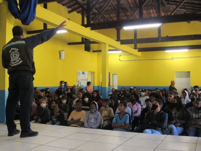 A manhã desta segunda-feira (13) foi de orientação e troca de conhecimento, entre docentes da Escola Estadual Professor Manoel Soares, no distrito de Ipoema, e cinco comissários da Infância e Juventude, lotados em duas comarcas, a de Barão de Cocais, e de Itabira. A força tarefa fez um trabalho orientativo para boa parte dos 300 alunos da instituição de ensino, em especial uma turma específica com estudantes da maioria das séries do período, com o objetivo de criar multiplicadores.