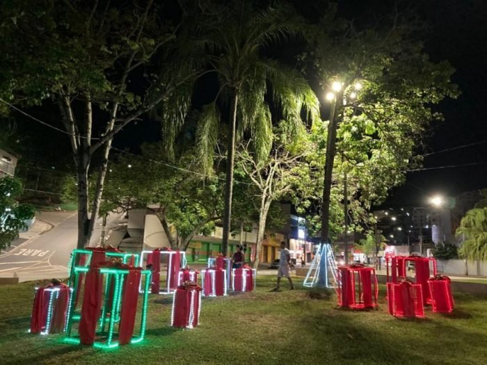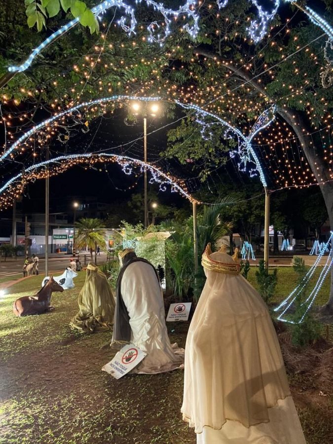 A Praça Acrísio Alvarenga chama a atenção de quem passa pelo Centro de Itabira. As luzes da Praça foram acesas no último fim de semana pela Prefeitura e colorem o espaço decorado com os tradicionais cenários da vila noel e do presépio que ilustra o nascimento do Cristo.